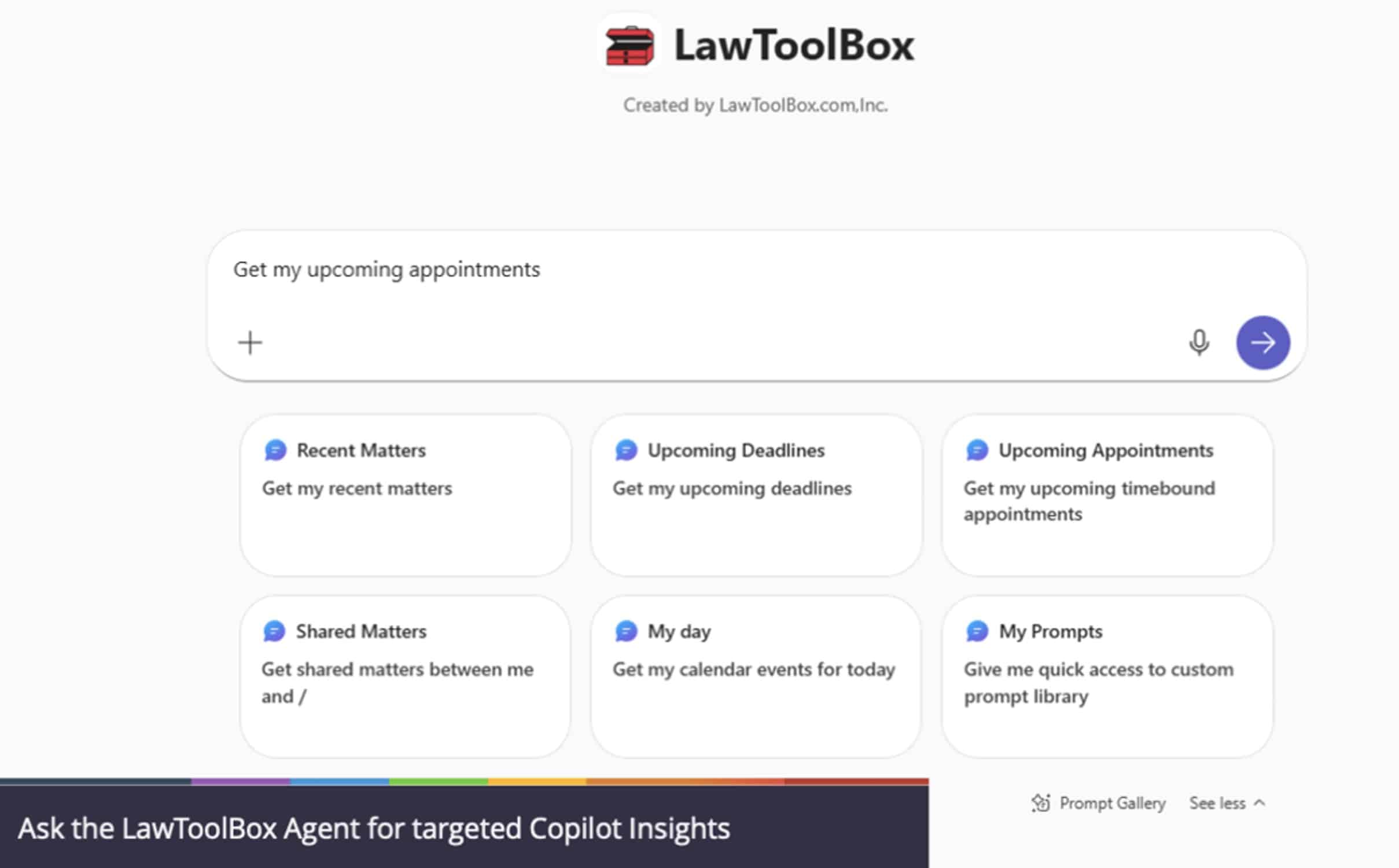 LawToolBox provides a prompt library out-of-the-box, and gives legal organizations robust tools to create and surface their own custom prompts in Copilot!
